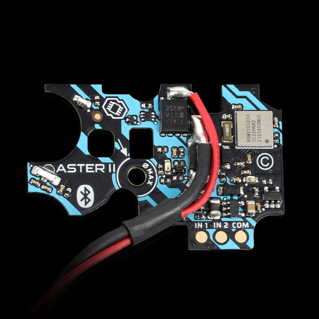 • gotowy na napięcie 3.75 V – ASTER II Bluetooth® pracuje przy bardzo niskim napięciu (nawet 1.2 V podczas strzału), co jest istotne w mocno tuningowanych replikach AEG, gdzie napięcie pod obciążeniem znacznie spada